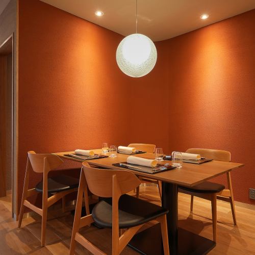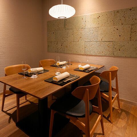 幅広いゲストが心から憩える空間も評判です。古代から続くベンガラ色の塗り壁、天然木や大谷石など自然素材に包まれたゆったりとくつろげる空間。テーブルの間隔がゆったりしているので、ご接待や大切な方とのお食事に最適です。